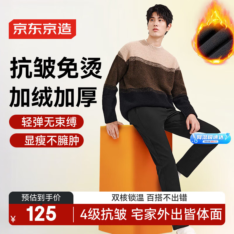 包邮 京东京造【加绒加厚】休闲裤男西裤子男士服装秋冬易打理西装裤男 黑色L